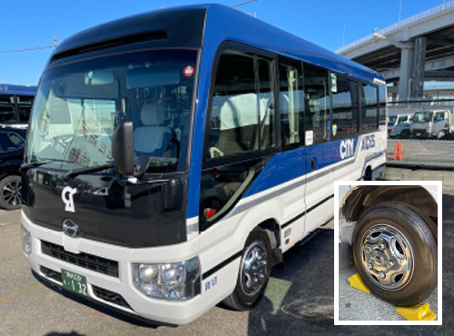 シティアクセスではこれまで、夏タイヤにAのミックスタイヤを使用していました。Aは、グリップ力が強い反面、走行音にバタバタ音やゴーゴー音が伴い、周辺環境に優しくないとの判断から、2015年(平成27年)からは、全車(現在39台)にBのリブタイヤを装着し、環境に配意しています。