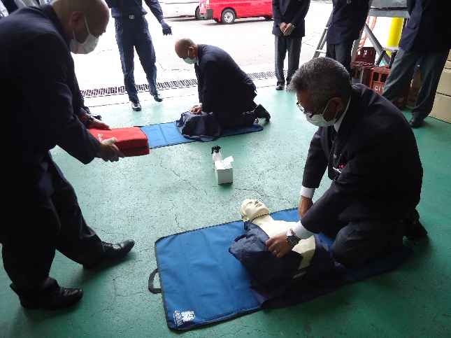 外部講師に横浜市中消防署予防課様をお招きし、貸切バス運行乗務員を対象に救命救急講習会及び避難措置研修会を行いました。